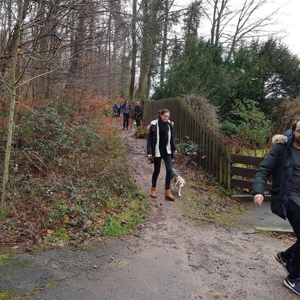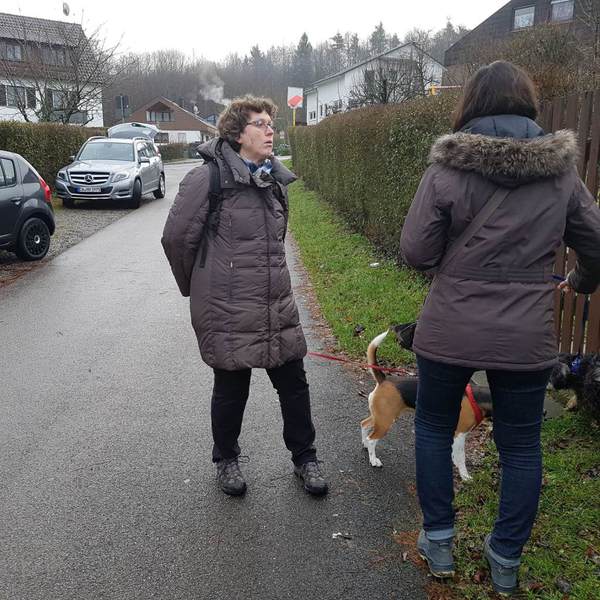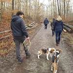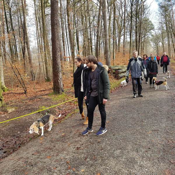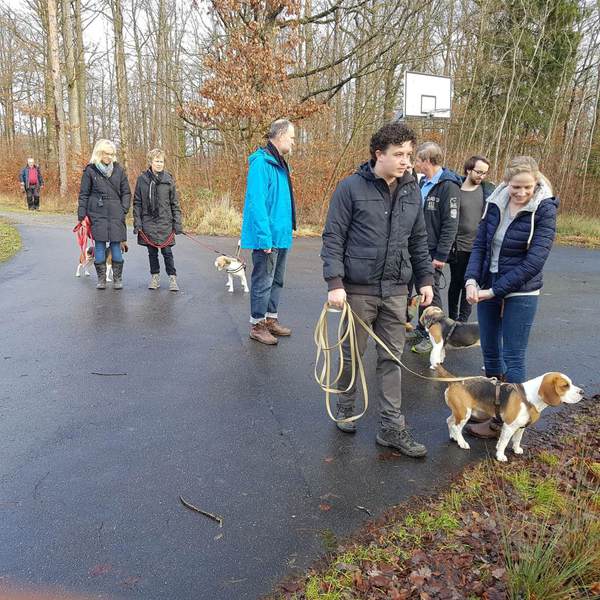 Auf dem Parkplatz vor dem Gansseestüble in Böblingen trafen sich 22 Beagler mit 14 Beagle und zwei non Beagle zur Wanderung. Zum Glück hatte der Wettergott ein Einsehen. Nach den vergangenen stürmischen und regenreichen Tagen war es am Wandertag zwar bewölkt jedoch trocken. Nachdem Vollzähligkeit festgestellt wurde starteten wir gegen 10:00 Uhr in Richtung Rauher Kapf.