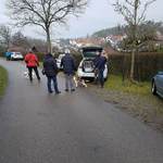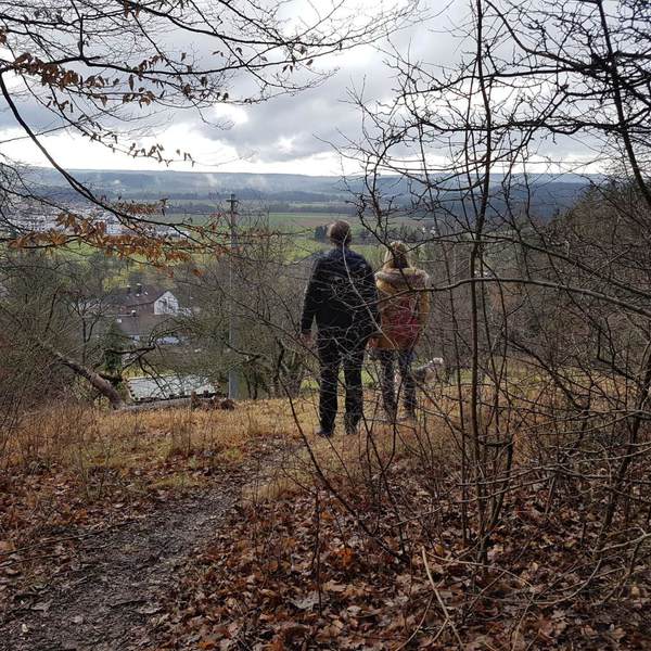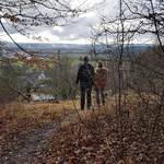 Zunächst ging es durch überwiegend Waldwege, dann über eine kleine Anhöhe, von der wir direkt auf und über Schönaich schauen konnten. Da die Wolkendecke mittlerweile in kleinen Abschnitten aufriss und kurzzeitig sogar die Sonne durchkam konnten wir in Teilen die tolle Aussicht auf die Schwäbische Alb genießen.