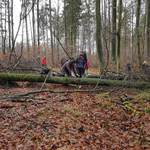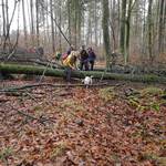 In einigen Abschnitten konnten wir die Hinterlassenschaften des Sturms sehen. Er hatte uns auch ein paar Hindernisse auf dem Weg hinterlassen. Für unsere Vierbeiner stellten die querliegenden Bäume kein Hindernis dar. Die geübten Wanderteilnehmer nahmen die Herausforderung als sportliche Einlage gerne an.