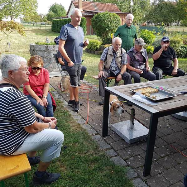 Im Schützenhaus wurden wir bereits erwartet. Natürlich durften die Beagle mit einkehren und machten es sich wie immer unter den Tischen gemütlich. Nachdem alle einen Platz gefunden hatten wurden die ersten Bestellungen aufgegeben. Unser Beagler Hans ließ seinen Blick schweifen, schaute in die Runde, wer saß bei wem, wo wurde angeregt diskutiert und stellte fest, dass unser Wanderwart, Reinhard mitsamt Vierbeiner abgängig war. Wo war Reinhard geblieben?