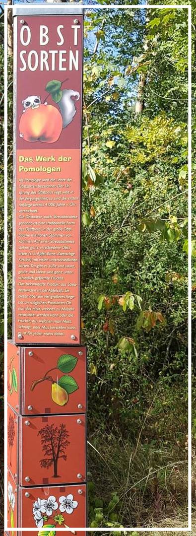Von dort aus ging es über sehr gut begehbare Wege vorbei an Feldern und Streuobstwiesen. Entlang eines Lehrpfades gab es für Wissbegierige immer wieder Informationstafeln vom Landesverband für Obstbau .