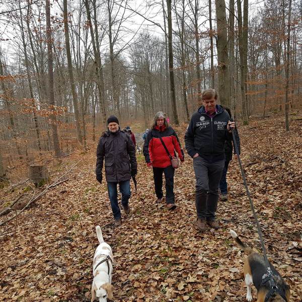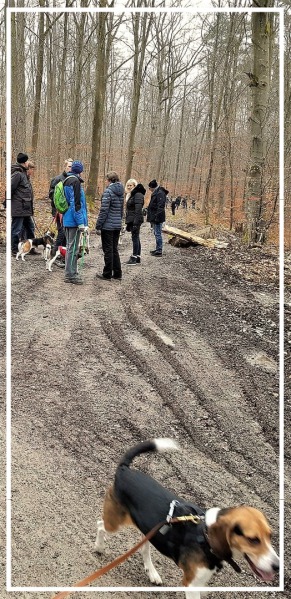 Zur Überraschung gesellte sich noch unser Seniorenteam (natürlich auf die Hunde bezogen!), sprich eine Gruppe von 4 Personen und 2 Hunden zu uns. Diese hatten sich für eine kürzere Strecke entschieden, um die etwas älteren Beagle (Ü 15) nicht zu überanstrengen.