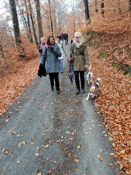 Unter der Führung von Uli, bei leichtem Nieselwetter jedoch noch annehmbaren 10 Grad, ging zunächst durch den Herbstwald entlang am Heimbergäckerweg in Richtung Mäderklinge. Die Jahreszeit war deutlich an den vielen braunen Blättern am Boden zu erkennen. Weiter führte uns der Wanderweg entlang an der Eichenwaldallee.