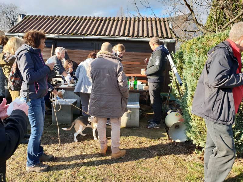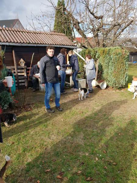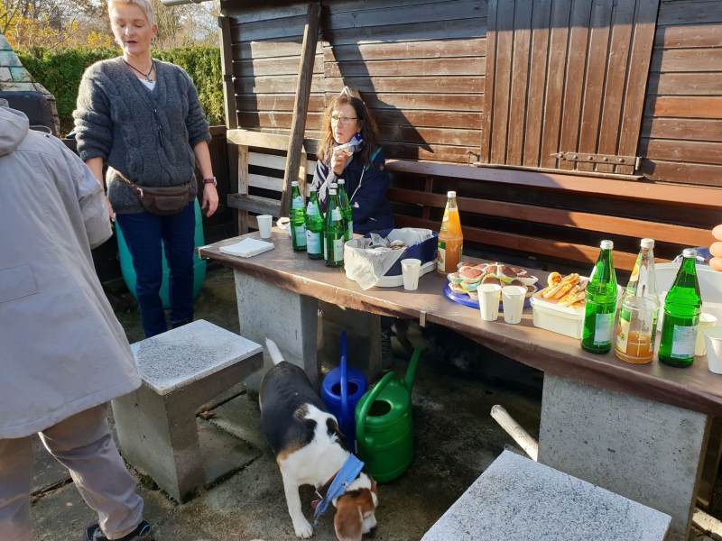 Für die Zweibeiner hatten Jutta und Uli eine kleine Stärkung vorbereitet, die gerne angenommen wurde. Vielen Dank dafür. Die Hundemeute flitzte im Garten umher und es kann ja nicht anders sein, streckte sich doch die ein oder andere Hundenase in Richtung Tisch, auf dem die Köstlichkeiten aufgebaut waren. Immer wieder war das Kommando "Nein" zu vernehmen.