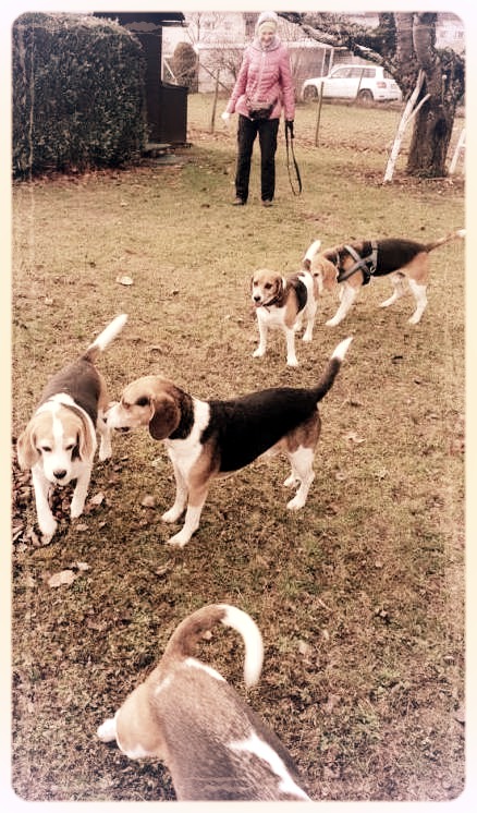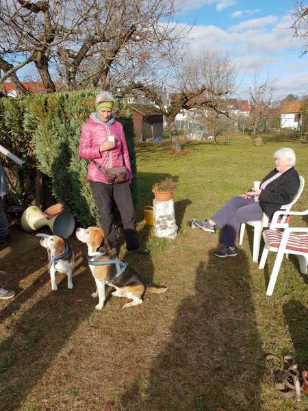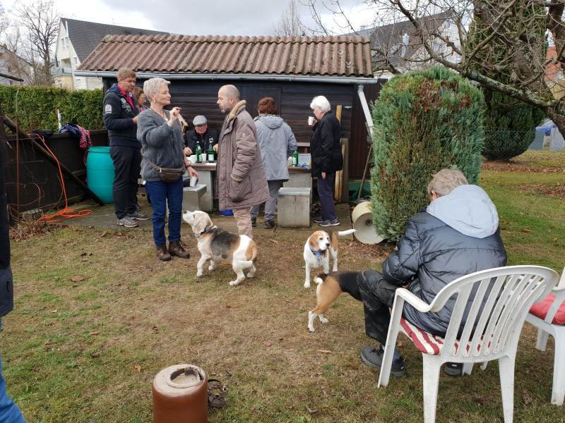 Da der Garten von Jutta umzäunt ist, was uns Beaglebesitzern sehr entgegenkam, durften wir unsere Vierbeiner von der Leine lassen, sodaß sie sich mal richtig austoben konnten.