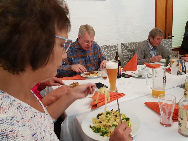 Bei gutem Essen und guter Unterhaltung in einem gemütlichen Nebenraum konnten wir den Tag ausklingen lassen. Der sehr freundliche Wirt hatte am Schluss noch eine Überraschung parat und brachte für jeden Gast noch einen Gruß aus der Küche, in flüssiger Form. Nein nicht was jetzt jeder denkt ... es war warm, alkoholfrei, fruchtig und sehr, sehr schmackhaft...