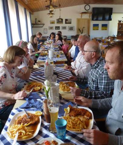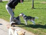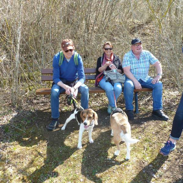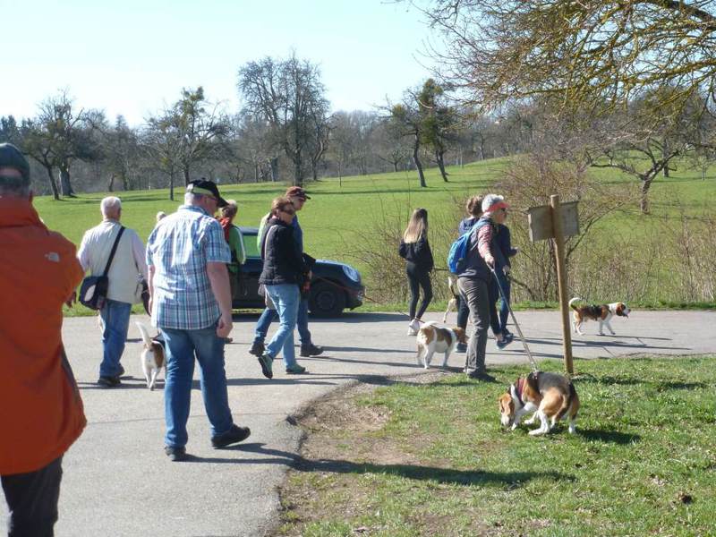 Bei vorausgesagtem Sommerwetter fanden sich 20 Beagle-Freunde mit 9 Beagle und unserem kleinen Bolonka Benny zum Wandern in Walddorf ein.Nach ca. 2 km und kurzer Wegstrecke durch den Wald bot sich ein herrlicher Blick auf den Nordschwarzwald und die Oberstadt von Altensteig mit Kirche und Fachwerkhäusern. Das nutzte der junge Beagle Sam gnadenlos aus, um auf eigene Faust auf Hasen- und Rotwildjagd zu verschwinden. Glücklich konnte sich der kleine Ausreisermit seinen Besitzern nach einer dreiviertel Stunde wieder der Gruppe anschließen. Die Tour führte teilweise durch das Naturschutzgebiet „EgenhäuserKapf“.Kurz vor unserem Ausgangspunkt vor Walddorf wanderte man noch durch ein Streuobstwiesengebiet, wobei wir überrascht waren, wie viele Apfelbäume von Misteln bevölkert waren. Im Sportheim Walddorf konnten wir dann zuerst unseren Durst stillen, um uns dann bei Schnitzel und Pommes wieder zu stärken. Dank des sehr sonnigen warmen Wetters war es eine schöne Frühlingswanderung.