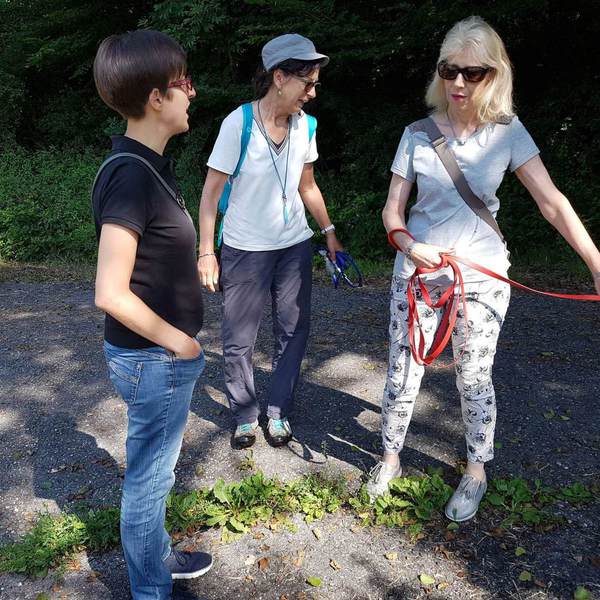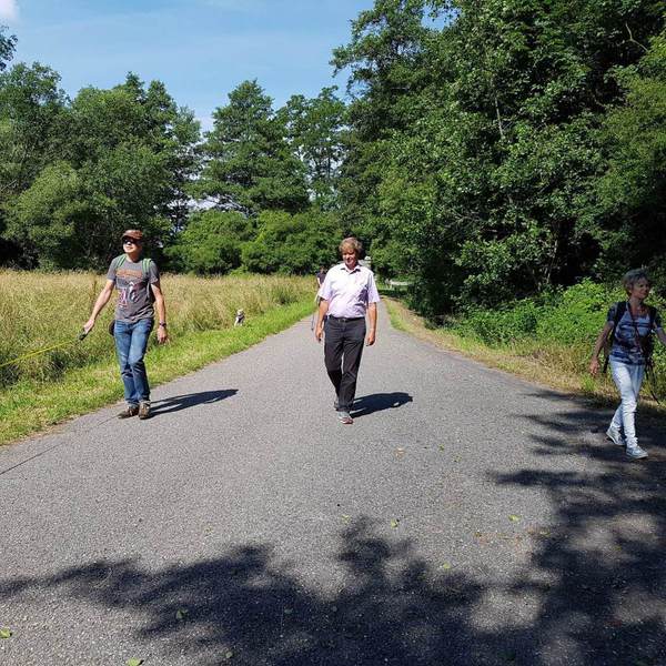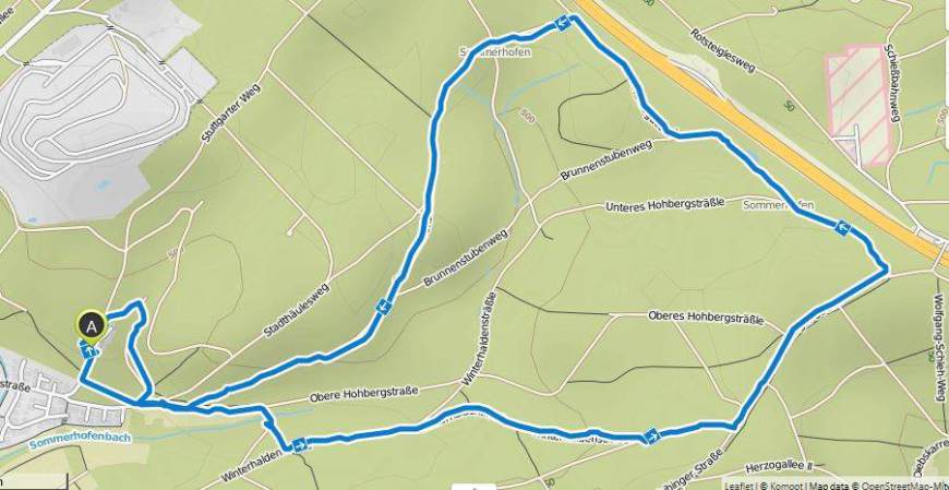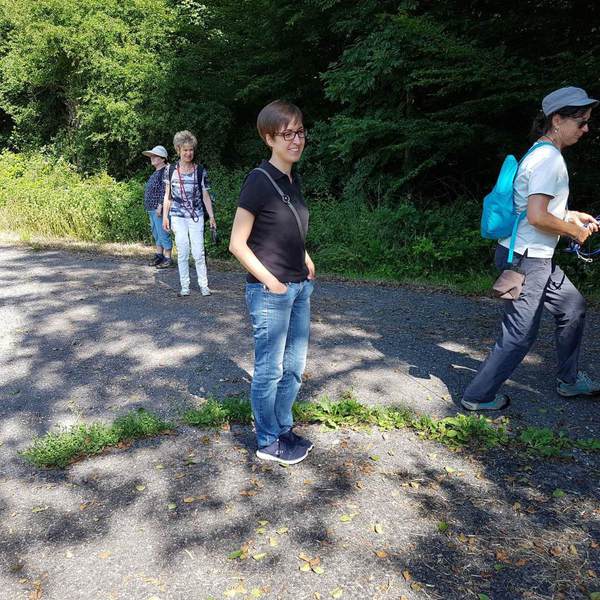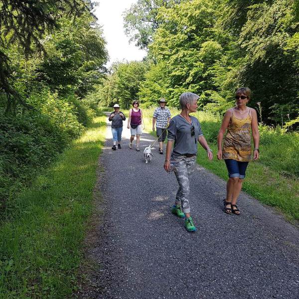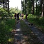 Der Weg führte uns größtenteils durch schattiges Waldgebiet was aufgrund der herrschenden Temperaturen sehr angenehm für Mensch und Vierbeiner war. Dabei kamen wir an einer Autobahnkapelle, der "Bernetkapelle" vorbei, die von Ehrenamtlichen gerade mit frischen Blumen bestückt wurde. Weiter ging es im und am Waldrand, vorbei an der Herzogallee parallel zur nicht weit entfernten Autobahn. Nach kurzer Zeit bogen wir ab, drehten in westlicher Richtung und spazierten am Sommerhofensträssle entlang, dann weiter über den Wilhelm-Ganzhorn-Weg bis wir wieder am Ausgangspunkt waren.