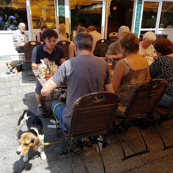 Der Ausklang dieser schönen Wanderung, bei der es an nichts fehlte fand im Restaurant "Haus Sommerhof" statt. Das sehr leckere Essen konnten wir Dank des guten Wetters draußen auf der Terrasse genießen. Die Beagles verweilten mehr oder weniger dösend unter den Tischen, Fremdlinge wurden jedoch durchaus geräuschvoll registriert.