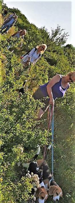 Glücklicherweise waren die meisten angeleint, bzw. die Beaglebesitzer waren reaktionsschnell und leinten noch eben schnell an, so dass die Feldhasen unbeschadet das Weite suchen konnten.