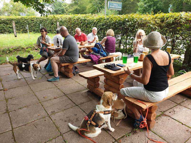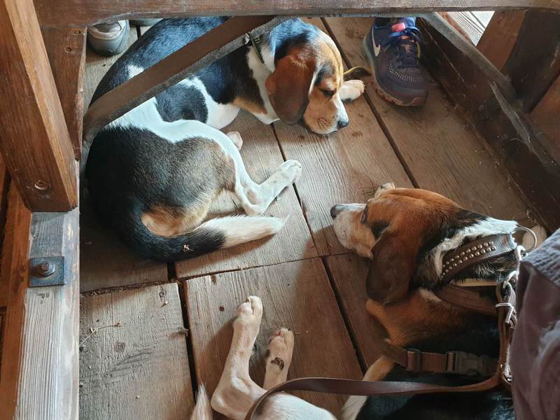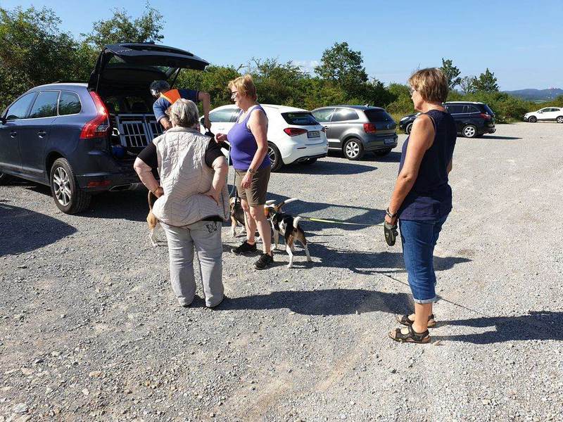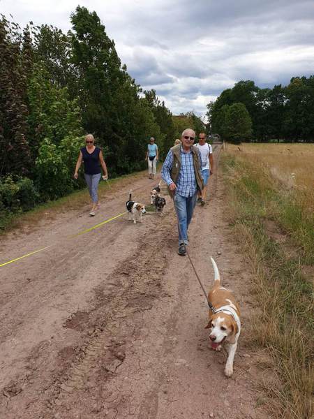 Generell konnten unsere Beagle diesen andersartigen Vierbeinern mit mehr oder weniger Toleranz begegnen. Auch die Beaglebesitzer genossen den gemütlichen Weg und nutzten dies zur Unterhaltung, als plötzlich eine Unruhe die Hundegruppe ergriff.