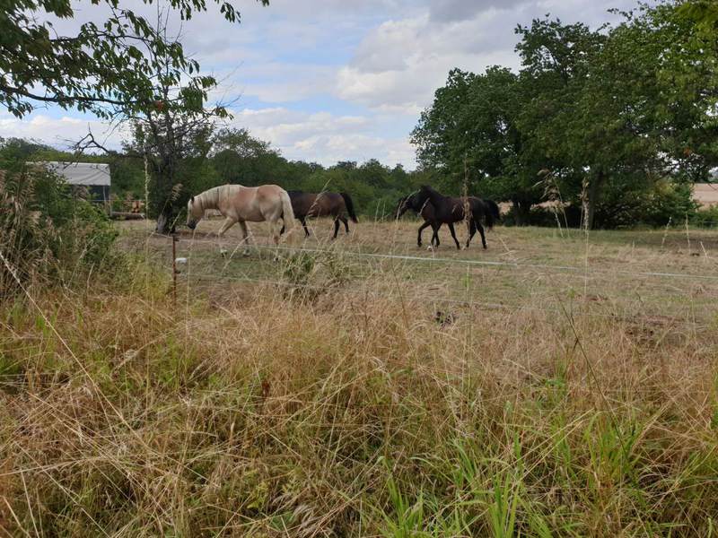 Über eine Parkanlage, die sich idealerweise direkt am Hotel befand, spazierten wir in das angrenzende Umfeld. Es ging über Wiesen und Felder, neben Koppeln mit Ziegen, Schafen und Pferde.