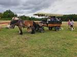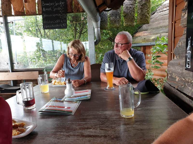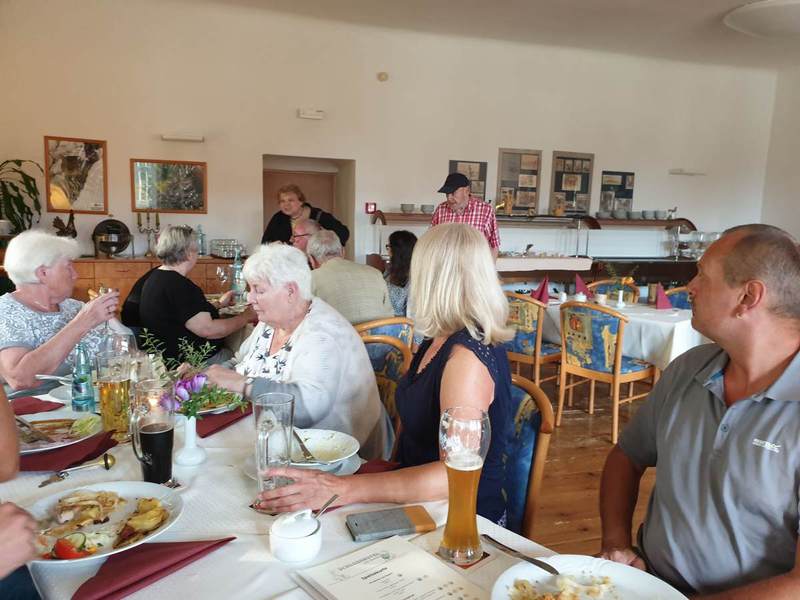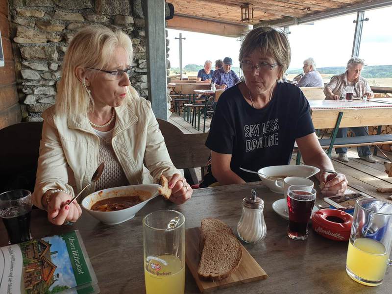 Am 10.08.2019, fuhren wir gegen 10.00 Uhr zu unserem heutigen Ausgangspunkt, ein Parkplatz in der Nähe des Graulaer Kreuz. Heute stand der Besuch des Nationalparks Hainich, UNESCO-Weltnaturerbe, auf dem Programm. Auch hier kam wieder örtliche Unterstützung durch Karin Jung und der Thüringer Gruppe, sodass wir mit 21 Personen starteten. Der Wanderweg führte uns den Rennsteig entlang und durch wunderschöne Heidelandschaft bis zum Ausblick "Wartburgblick". Zurück ging es über den Sperberweg. Der Wanderweg führte über Wiesen entlang eines ehemaligen Truppenübungsplatzes am Nationalpark Hainich. Für diejenigen, die Schwierigkeiten mit der Streckenbewältigung hatten, wurde eine Kutschfahrt organisiert, die sehr gut ankam. Treffpunkt war für alle dann die "Hainich Baude". Dort erwartete uns eine zünftige Hüttenkost.