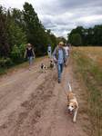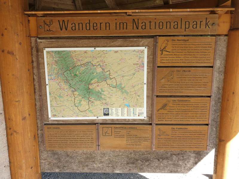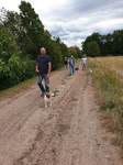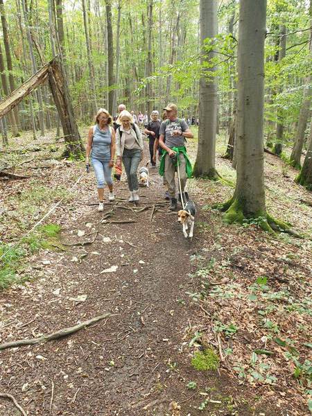Renate Zeiss lotste die Gruppe zu einem Wanderparkplatz nahe der Autobahn. Hier traf dann auch Karin Jung unsere Wanderführerin mit Mann und ihren drei Beaglemädchen ein, die uns bereits an den vorhergehenden Tagen schon begleitet haben. Dieser Rundweg, benannt nach der Nachtigall, führte uns durch urwüchsige Pflanzenvegetation, (zu DDR Zeiten war dies militärisches Übungsgelände der Sowjetischen Besatzer) teilweise sind auch noch Spuren davon ersichtlich. Hier hat sich die Natur ihr Gebiet wieder zurückgeholt.