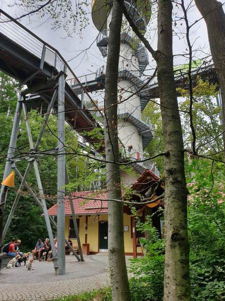 Interessierte konnten dort den Baumkronenpfad (Dem Urwald aufs Dach steigen) über den Baumwipfeln begehen. Einige Damen, die auch einmal hoch hinaus wollten, nutzten die Gelegenheit. Der Rest der Truppe machte es sich derweil am Fuße des Baumkronenpfades gemütlich. Nachdem die Gruppe wieder vollzählig war ging es abschließend über einen Rundweg im Naturpfad Thiemsbug zurück zum Parkplatz. Nicht nur die Vierbeiner waren mittlerweile froh über den "fahrbaren Untersatz". Auch dieser Tag war voller Sehenswürdigkeiten und man kann die Weite der Thüringer Waldpfade nur erahnen.