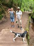 Wanderführerin Karin Jung mit Mann und Vierbeinern, die uns sehr engagiert und freundlich auf den Wanderungen begleitet hat