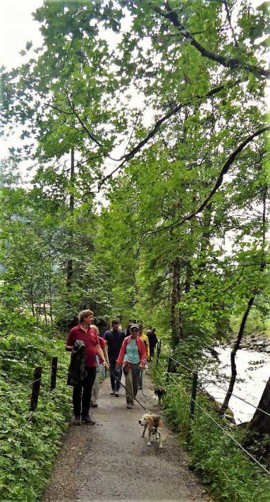 Am Sonntag machte uns der anhaltende Regen fast einen Strich durch unseren letzten Programmpunkt, den Besuch der Breittachklamm. Zum Glück hing das schlechte Wetter nur im Trettachtal. Bei Sonne konnten wir die impossante Schlucht mit ihrem tosendem Wasser bewundern. Lilly, unsere älteste und kleinste Beagledame, hat unsere Wanderungen alle gut gemeistert. In der Alpe Dornach ließen wir das Bergwochenende ausklingen.