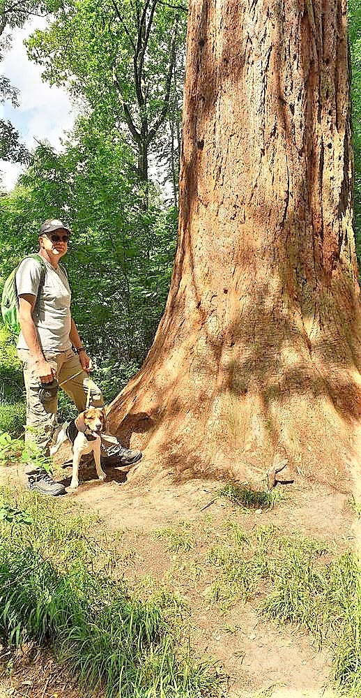 Unter vielen Bäumen konnten wir dann ein besonderes Exemplar bestaunen, einen imposanten Mammutbaum, (gepflanzt 1880). Eine Umarmung des Stammes wäre nur mit mehreren Personen möglich gewesen.