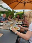 Bei jetzt schon wieder recht warmer Temperatur, freuten sich die Wanderer auf eine Stärkung und vor allem erst einmal auf ein kühles Getränk, im Lokal "Vesperbrettle" Auf der Außenterrasse unter Sonnenschirmen machten es sich Mensch und Tier gemütlich. Jetzt war es an der Zeit, nach ausreichend frischer Luft und körperlicher Bewegung, sich ausgiebig zu stärken und bei guter Unterhaltung den Nachmittag ausklingen zu lassen.