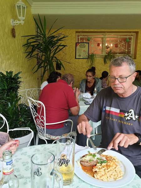 Nun freuten sich die Zweibeiner auf eine Stärkung und die Vierbeiner auf etwas Ruhe. Im sehr romantisch und idyllisch gelegenen „Schlössle“ mit Ausblick auf den wunderschönen Garten nahmen wir dann unser Mittagessen ein.