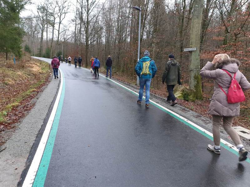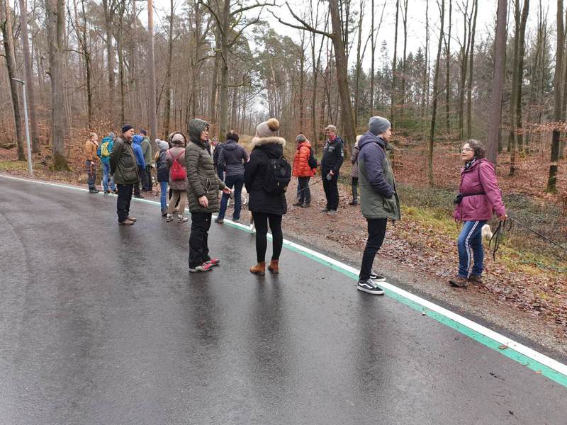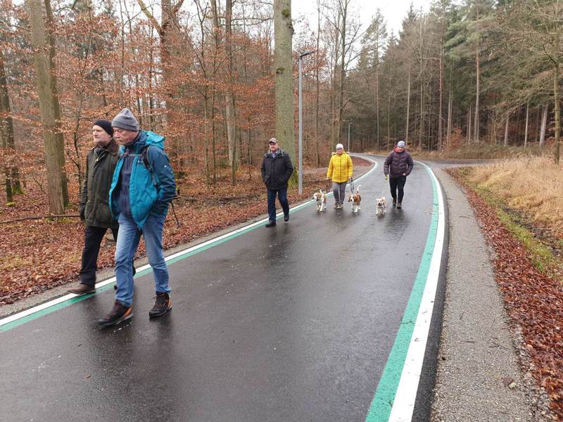 Am Treffpunkt „Zum Schützenhaus“ angekommen, waren die Schützen nicht zu überhören, es fand offensichtlich aktuell ein Übungsschießen statt. Da wir alle unsere „Jagdhunde“ vorsichtshalber an der Leine hatten, konnte hier an Ort und Stelle die Schusstauglichkeit getestet werden.