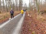 Zunächst ging es entlang der Römerstraße (Kulturdenkmal) und mittlerweile ausgebauter Radweg nach Stuttgart, durch den Sindelfinger Wald entlang des Musberger Sträßchen, anschließend weiter auf dem Führsuchweg, dann der Wechsel zum Schönaicher Pfad. Den Schießlärm hatten wir hinter uns gelassen. Von dort dann weiter auf dem Sindelfinger Spitzweg. Dieser führte über ein Bahngleis in Richtung Kaufwaldallee. Da der Wettergott offensichtlich ein Einsehen hatte, hörte der Nieselregen auf und wir konnten ohne Schirm und anderweitigen Kopfbedeckungen unsere Wanderung fortsetzen. Der Wanderweg gut ausgebaut und gut begehbar, ließ regen Gesprächsaustausch zu. Auch die Gastteilnehmer konnten sich bei den ein oder anderen Beaglebesitzern im Verlauf der Wanderung gezielte Informationen und Meinungen einholen.