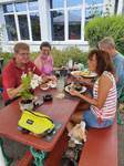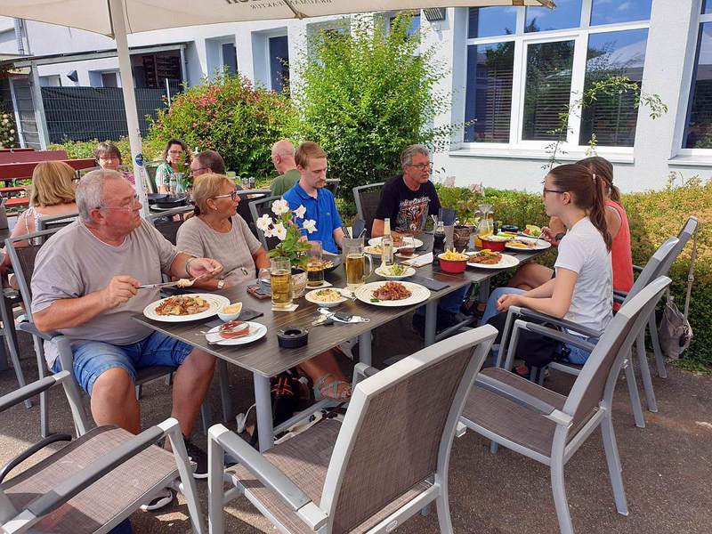 Zum Ausgangspunkt zurückgekehrt, fuhren wir gemeinsam zum nahegelegenen Restaurant "Palladion". Dort konnten sich alle ausgiebig auf der Terrasse stärken und bei guter Unterhaltung den Nachmittag ausklingen lassen. Die Beagles ruhten sich derweil unterm Tisch im Schatten aus.