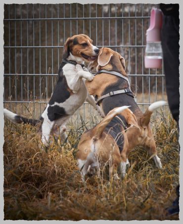 Es hatte den Anschein, dass einige Beagle geradezu ausgehungert nach solchen Aktivitäten waren, ja im Rudel geht´s natürlich richtig rund und macht viel mehr Spaß. Es wollte kein Ende nehmen. Nach etwa einer Stunde wurden dann doch die ersten Verschnaufpausen eingelegt, da sich bei den ersten Vierbeinern Ermüdungserscheinungen zeigten, sprich sie waren platt.