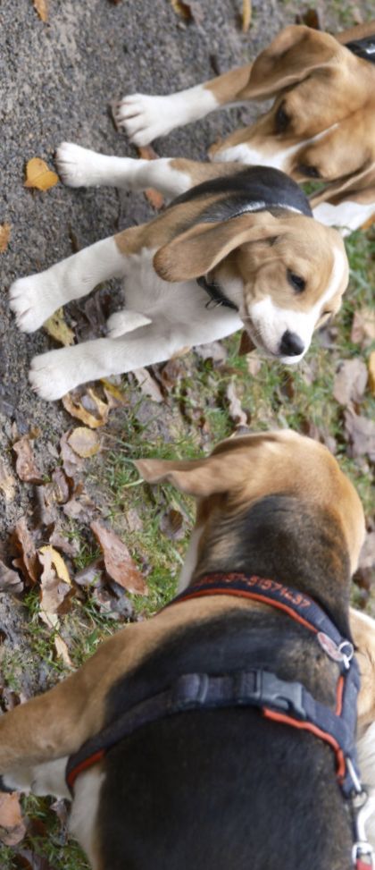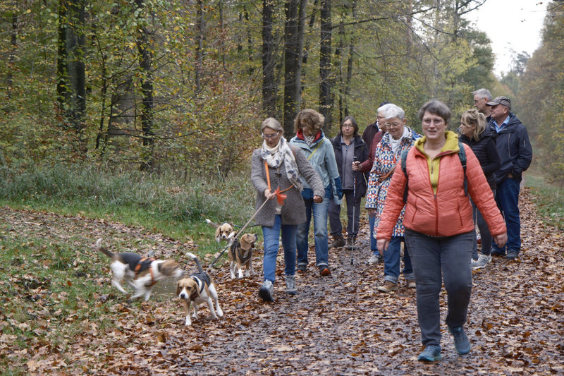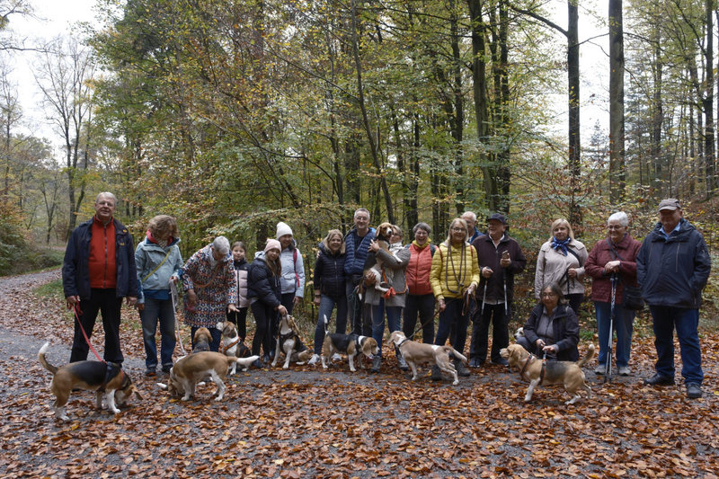 verschiedener Beagler. Erschwert wurde die Aktion dadurch, das genau jetzt ein Beagle jagen wollte und alle anderen dann auch. Aber alle schafften dann schmerzfrei den Weg ins Waldgasthaus, in