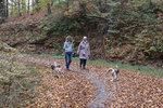 Bis auf die letzten 200m: Da wurde von den Herrchen und Frauchen das äußerste abverlangt. Der schmale, steile und durch das nasse Laub schwierig zu gehende Weg, erforderte zum Teil die Hilfe