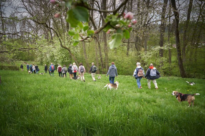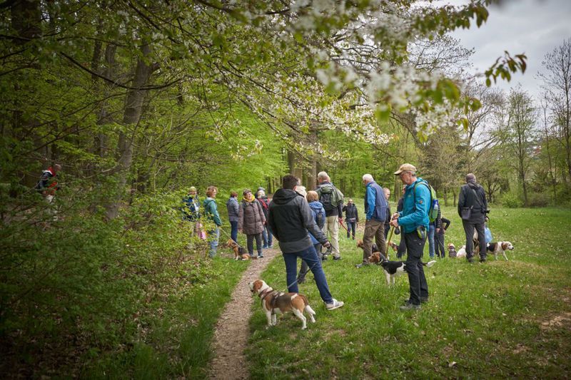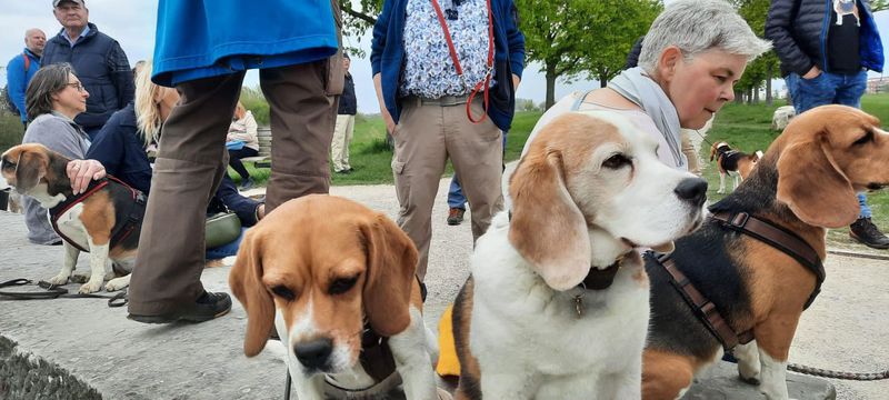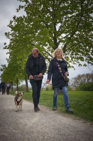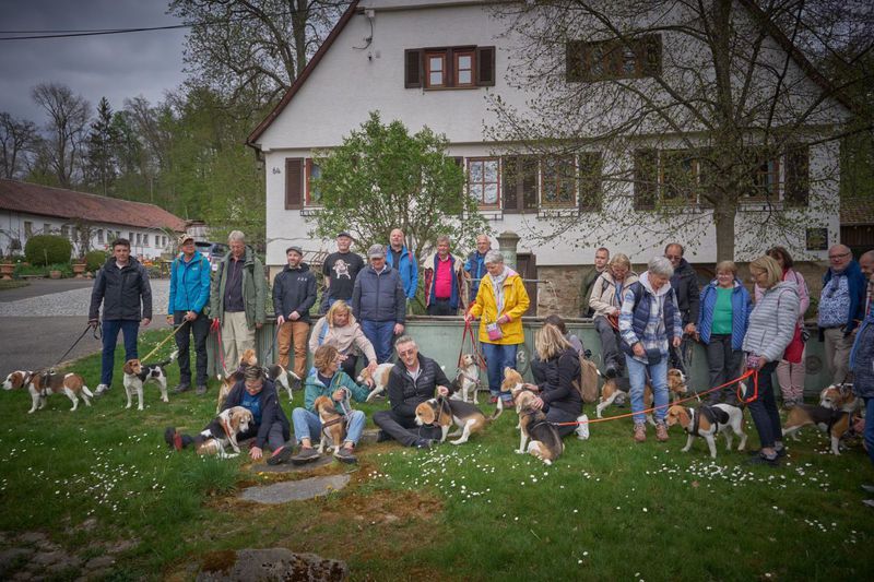 35 Zwei- und 17 Vierbeiner müssen erst einmal einen halben Tag lang betreut, unterhalten und – wie es sich für einen guten Gastgeber gehört – schlussendlich mit lecker Essen versorgt werden. Ein Kraftakt, vor allem wenn es sich um Beagle und deren Besitzer handelt. Doch Conny und Rolf Maier meisterten diese Herausforderung mit Bravour. Der erste große Tagesausflug der Beagle Landesgruppe Baden-Württemberg seit Ausbruch der Corona-Pandemie, bei dem es die „Meute“ am Samstag, den 23. April, nach Ostfildern zum Scharnhauser Park verschlug, war einfach nur Spitze. „Perfektes Beagle-Wetter“, befand Rolf, als er die Gruppe gegen 14 Uhr auf einen wunderschönen, gut sechs Kilometer langen Rundkurs schickte. Einige wenige blieben zurück und wurden von Conny drei Stunden lang „bespaßt“.