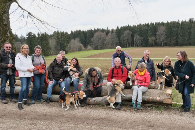 Eine Gruppe, bestehend aus 5 Beagles und 6 Leinenhalter, startete zu einer ca. 4 km langen und 6 Beagles und 14 Dosenöffner zu einer ca. 8 km langen Runde.