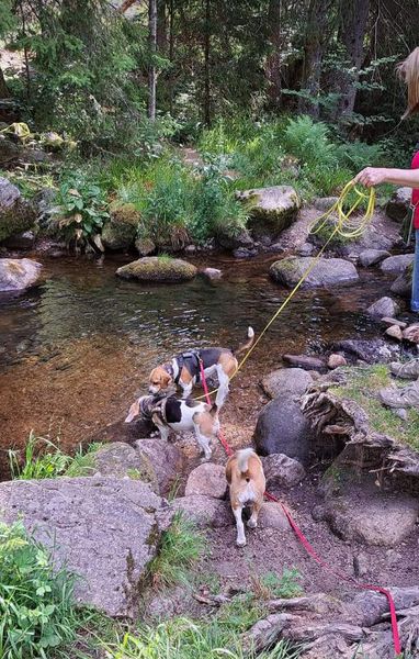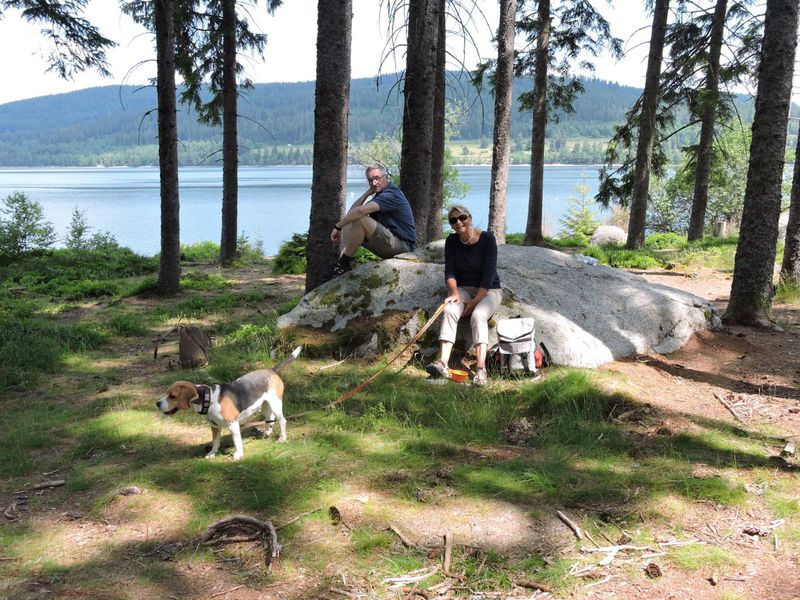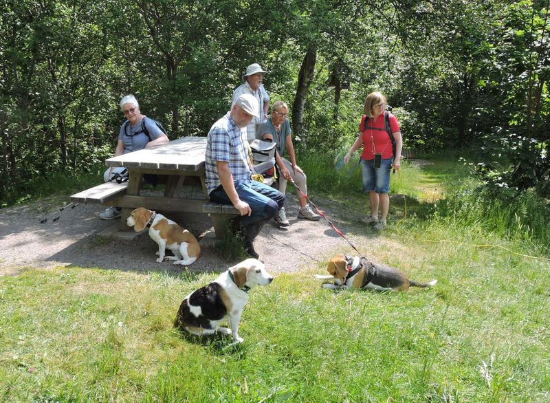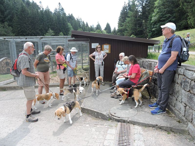 Auf Einladung von Fam. Scheurenbrand kamen 15 Beagler mit 8 Beagles an den Schluchsee im schönen Schwarzwald. Treffpunkt am Donnerstag war der Parkplatz Tannenmühle bei Grafenhausen. Die Profis wanderten hier ca. 2 Stunden in den Wäldern rund um die Tannenmühle. Eine kleine Gruppe machte ein kürzere Runde am Bach entlang. Anschließend gab es eine Einkehr im Gasthaus Tannenmühle, wo wir uns stärkten. Im Bartlehof wurde der Abend dann gemütlich beendet. Leider kam dann die Nachricht, daß Jörg erkrankt war und das Wochenende nicht mit uns verbringen konnte.