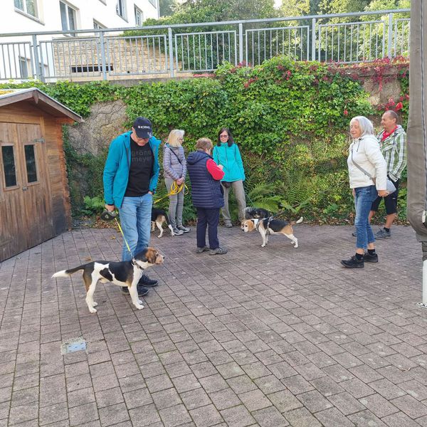 Selbst der Schäferhund, der auf seiner Decke im Raum alles im Blick hatte und öfter mal eine Runde drehte, konnte sich mit der Beagleübermacht im Raum arrangieren.