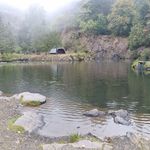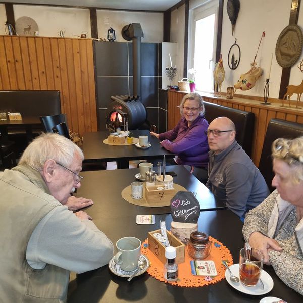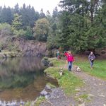 Am ersten Ziel, der Bergsee Ebertswiese trafen beide Gruppen wieder zusammen. Einkehr zur Stärkung war geplant im Steinbruchstübchen, welches sich im Ferienpark Ebertswiese befindet.
