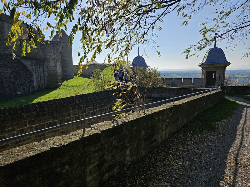Zunächst führte der Weg zurück durch das Tor außerhalb der Festung, entlang der Burg zwischen Weinbergen, den mittleren Bergweg.