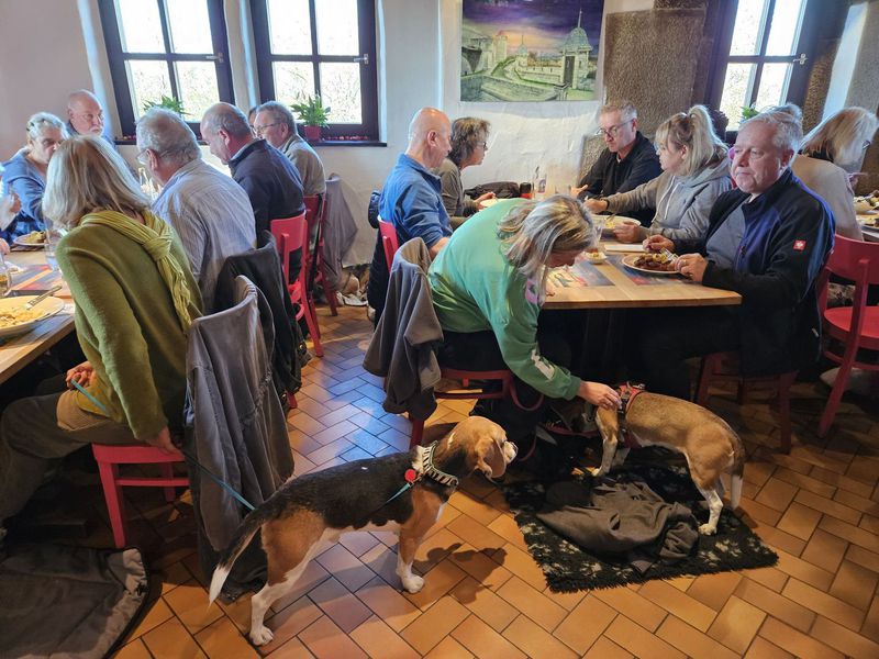 Die Beagle und non Beagle verweilten derweil mehr oder weniger erschöpft und dank guter Erziehung dösend unter den Tischen.