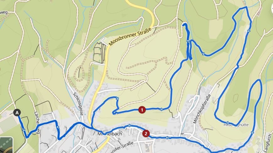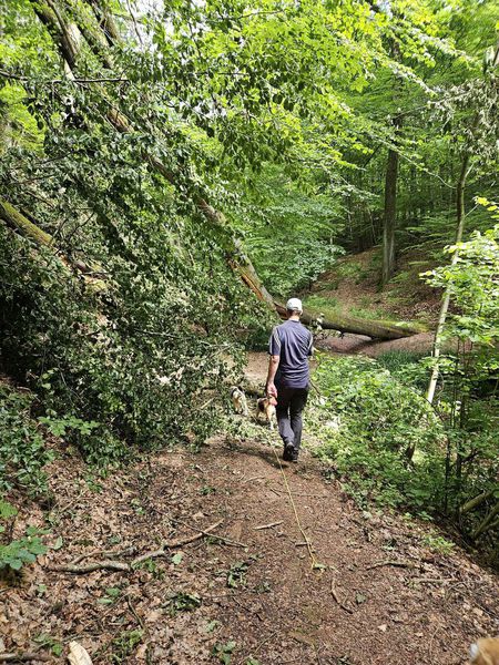 Die Strecke führte uns zuerst kurz in einen Waldweg, aus dem wir dann, nach einem „steilen Abstieg“ in den Ort Michelbach kamen, wo wir auch gleich lautstark aus einem Vorgarten von 3 Chihuahua’s begrüßt wurden. Manch ein Beagle ließ es sich nicht nehmen, darauf zu antworten.
