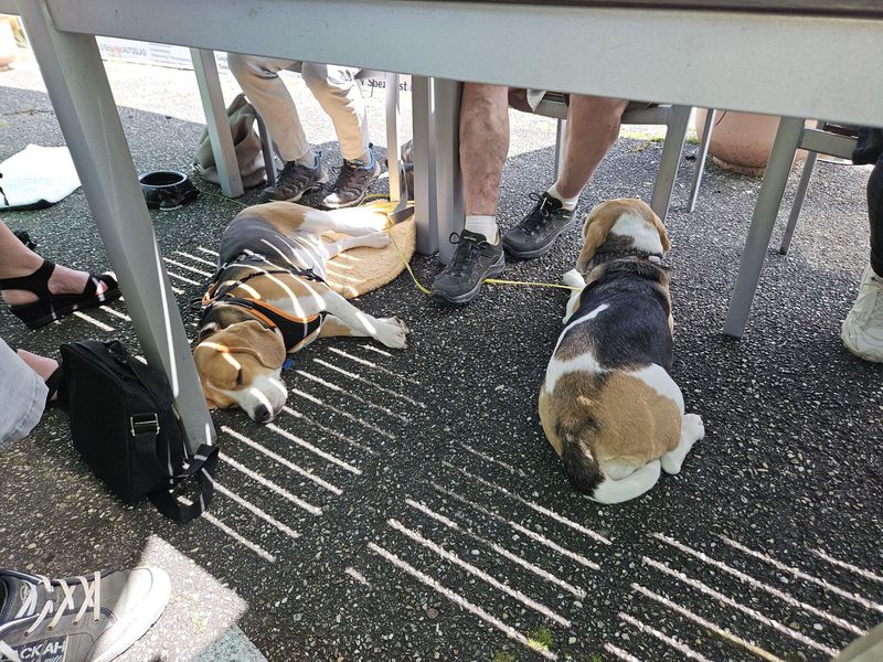 Wir nahmen dann unser leckeres XXL Mittagessen ein, wobei unsere Beagles sich sehr gesittet, wie immer, unter dem Tisch ausruhten. Auch die Unterhaltung kam nicht zu kurz.