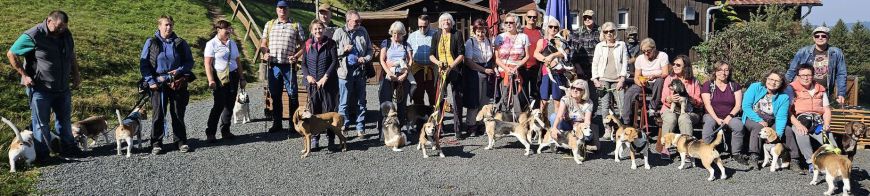 Renate Zeiss, Vorsitzende der LG Baden-Württemberg, hatte zu einem gemeinsamen Beaglewochenende mit der LG Thüringen in Hilders eingeladen. Der Einladung folgten insgesamt 27 Personen mit 18 Vierbeinern davon 3 non Beagle.