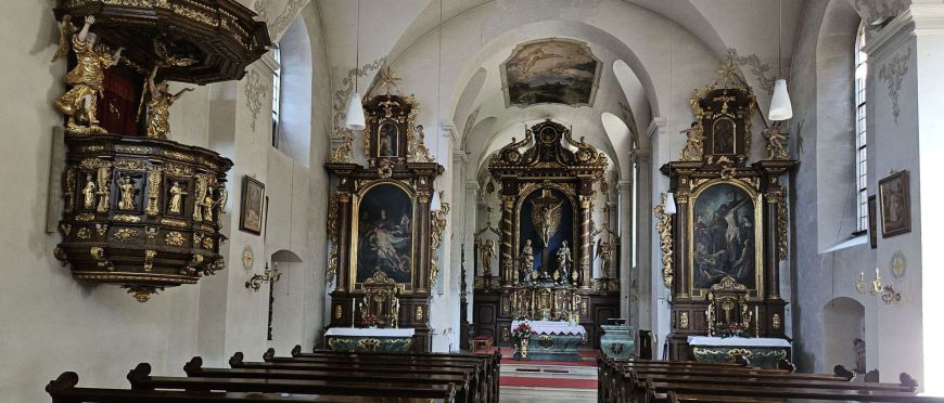 Nach einem ausgiebigen Frühstück stand eine rd. ½ stündige Anfahrt mit dem Auto zum Ausgangspunkt an. Start war der Wanderparkplatz Gasthof Roth. Von dort aus ging es zunächst stetig bergauf. Auf diesem Wege kamen wir an verschiedenen Almhütten und Bergstationen, Bergwachtstützpunkte, sowie einer Skiliftstation vorbei. Das Wetter meinte es sehr gut mit uns. Es herrschte optimales Wanderwetter klar, sonnig und nicht zu heiß. Auch konnten entlang der Strecke unterschiedliche Skulpturen und Sehenswürdigkeiten betrachtet werden. Die Aussicht war aufgrund der Höhe ca. 970 m, und der Lage sowie der Wetterverhältnisse optimal. Der Wanderweg führte uns weiter zum Kloster Kreuzberg. Dort war ein einstündiger Aufenthalt mit Besichtigung, Rast und Essen mit Verkostung des Klosterbier‘s vorgesehen.