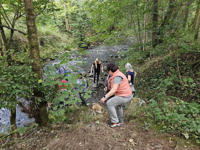 Vom Ausgangspunkt, Gasthaus Hohmann, führte der Weg zunächst durch den Ort Hilders, dann über eine Parkanlage direkt zum Fischlehrpfad. Der Weg ging größtenteils über befestigte Wege und Wiesen entlang am Bach Ulster. Dieser war mit mehreren Informationstafeln versehen so, dass Interessierte sich über die unterschiedlichen Fischvorkommen in der Rhön informieren konnten.