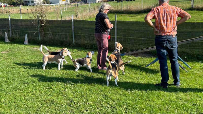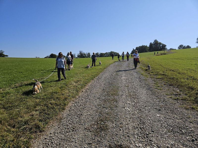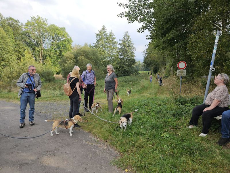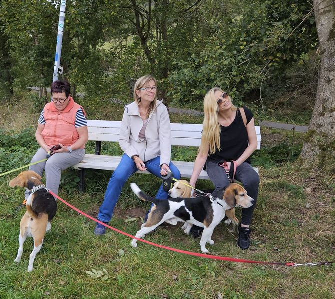 Beim Zusammentreffen „andersrassiger Vierbeiner“ konnten unsere Beagle, außer dem altbekannten Benni, diesen mit mehr oder weniger Toleranz begegnen. Den gemütlichen Spazierweg nutzten die Beaglebesitzer und Co. zur ausgiebigen Unterhaltung
