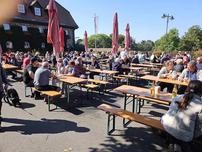 Es stellte sich dann heraus, dass in Thüringen heute Feiertag ist und aufgrund des herrlichen Wetters offensichtlich viel Wanderer unterwegs waren, die das gleiche Ziel hatten.