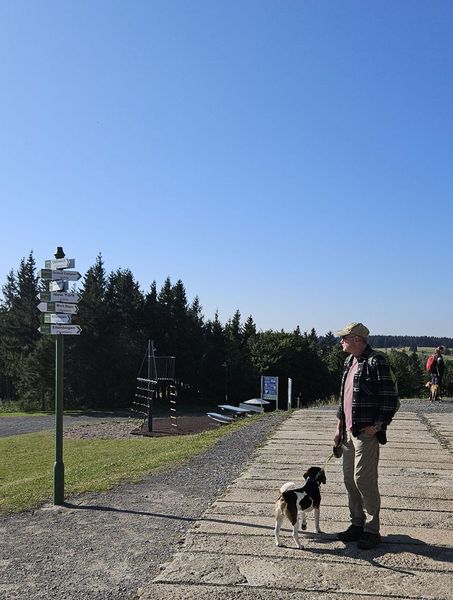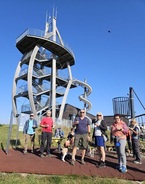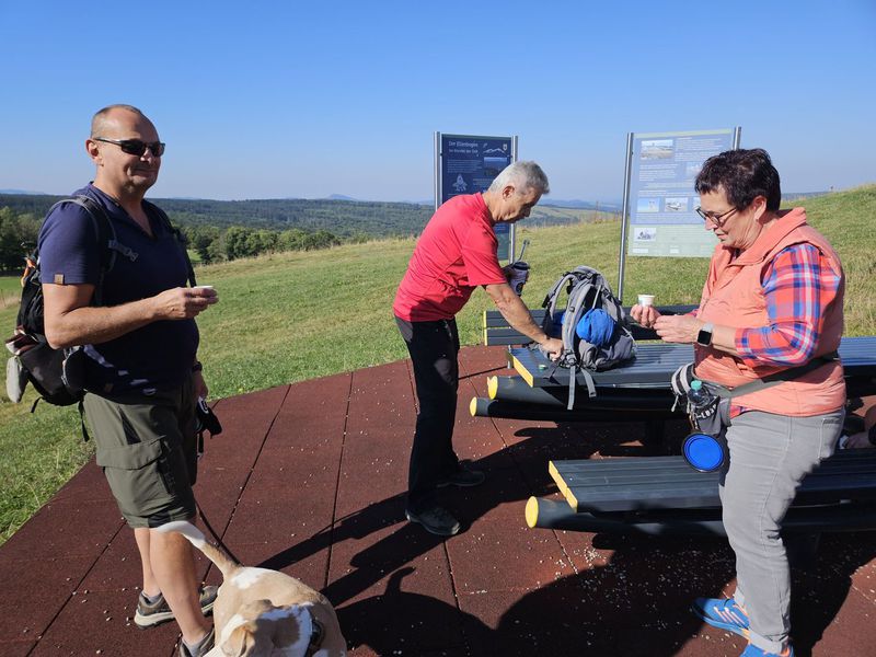 Für heute war eine Rundwanderung vom Wanderparkplatz zu „Noahs Segel“ (23 m Aussichtsplattform) im UNESCO-Biosphärenreservat nach Oberweid mit Einkehr ins Gasthaus zur Silberdistel und wieder zurück geplant. Am Vorabend wurde beim Abendessen die Information weitergegeben, dass aufgrund einer kurzfristig anberaumten Feier, Goldene Hochzeit, im Gasthaus zur Silberdistel nur Kaffee und Kuchen angeboten werden kann.
