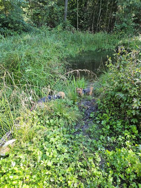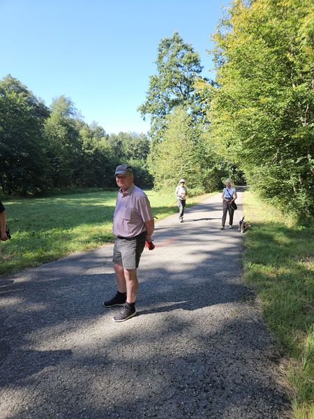 Der Weg führte uns größtenteils durch schattiges Waldgebiet was aufgrund der herrschenden Temperaturen sehr angenehm für Mensch und Vierbeiner war. Dabei kamen wir an verschiedenen schönen Aussichtspunkten vorbei. Weiter ging es im und am Waldrand, vorbei an der Herzogallee parallel zur nicht weit entfernten Autobahn. Der gut begehbare Weg führte uns im großen Bogen weiter vorbei an verschiedenen Biotopen bis wir wieder am Ausgangspunkt waren.