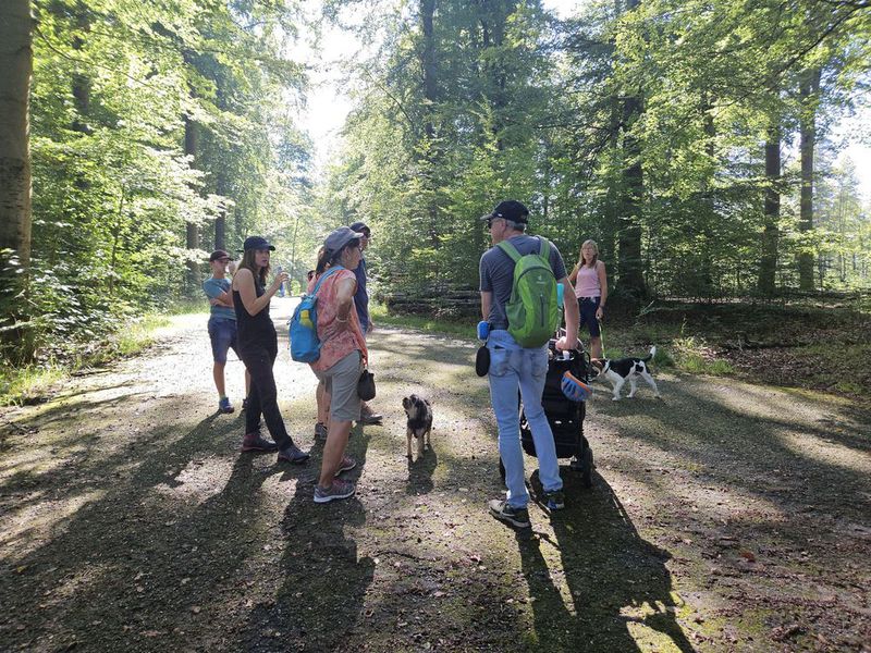 Treffpunkt war um 10:30 Uhr auf dem Wanderparkplatz am Sommerhofen in Sindelfingen. Vor dem Start verteilte Renate Urban eine kleine Wegzehrung für unsere Vierbeiner in Form von Hundekeksen an die Teilnehmer. Der Sommerhofen schien schon ein gutes Omen zu sein, denn bei strahlendem Sonnenschein und angenehmen sommerlichen Temperaturen starteten wir zunächst über asphaltierte Wege vorbei am Sommerhofbach durch den schönen Stadtwald von Sindelfingen.