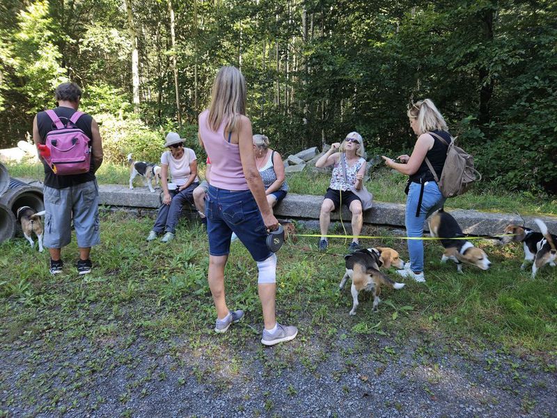 Am Samstag, den 07.09.2024 trafen wir uns, sprich 20 "Beagler" mit 8 Beagle sowie unserem Non Beagle Benni und einem weiteren Non Beagle (Name muss nochmals erfragt werden ?). Zum Schnuppern neu dabei war Beagledame Lotti nebst Begleitung. Eingeladen hatten diesmal Familie Urban und Familie Schweizer.