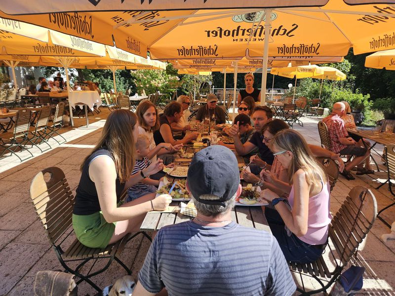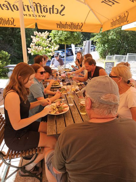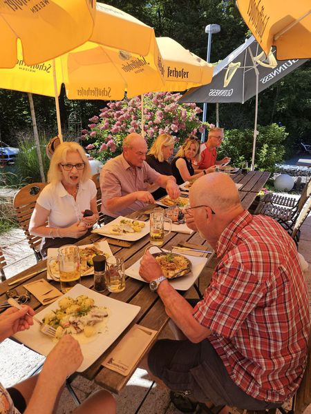 Der Ausklang dieser schönen Wanderung, bei der es an nichts fehlte, fand im Restaurant "Haus Sommerhof" statt. Das sehr leckere Essen konnten wir Dank des guten Wetters draußen auf der Terrasse genießen. Die Beagles verweilten mehr oder weniger dösend unter den Tischen, Fremdlinge wurden jedoch durchaus geräuschvoll registriert.