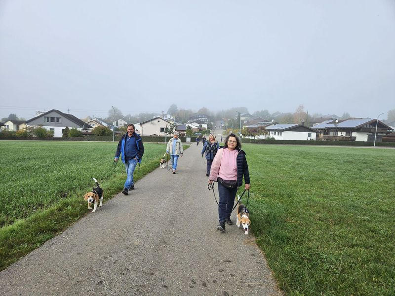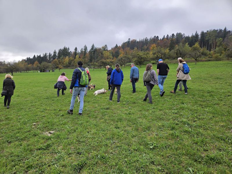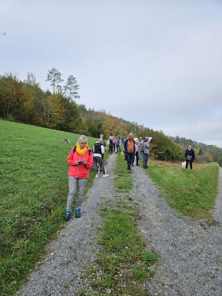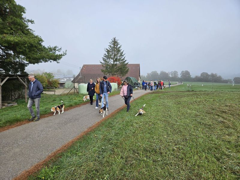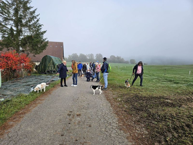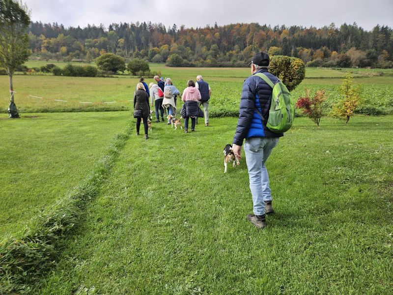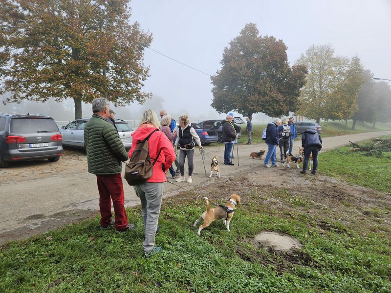 Insgesamt folgten 29 Personen mit 15 Beagle, sowie ein NonBeagle der Einladung. Nachdem von Hildegard Bühler (Hille) die Vollständigkeit festgestellt wurde, gab es eine Kurzinformation zum Ablauf der Wanderung sowie zu Abkürzungen und möglichen Abholpunkten.